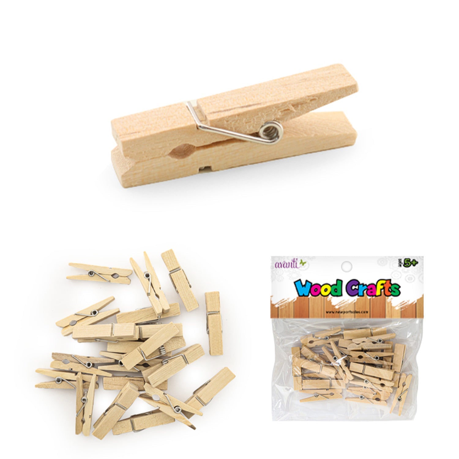 Mini Clothespins, Decorative Wood Clothes Pin of 2" Inches, 25pcs., 12-Pack