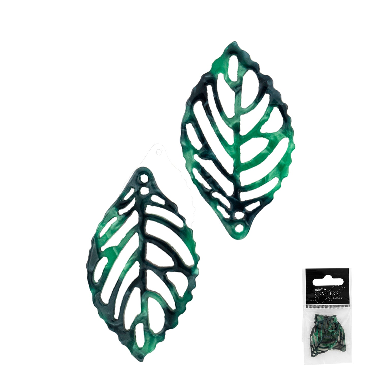 Leaf Pendant Charm, Resin, Green and Black, 2 Pieces, 12-Pack